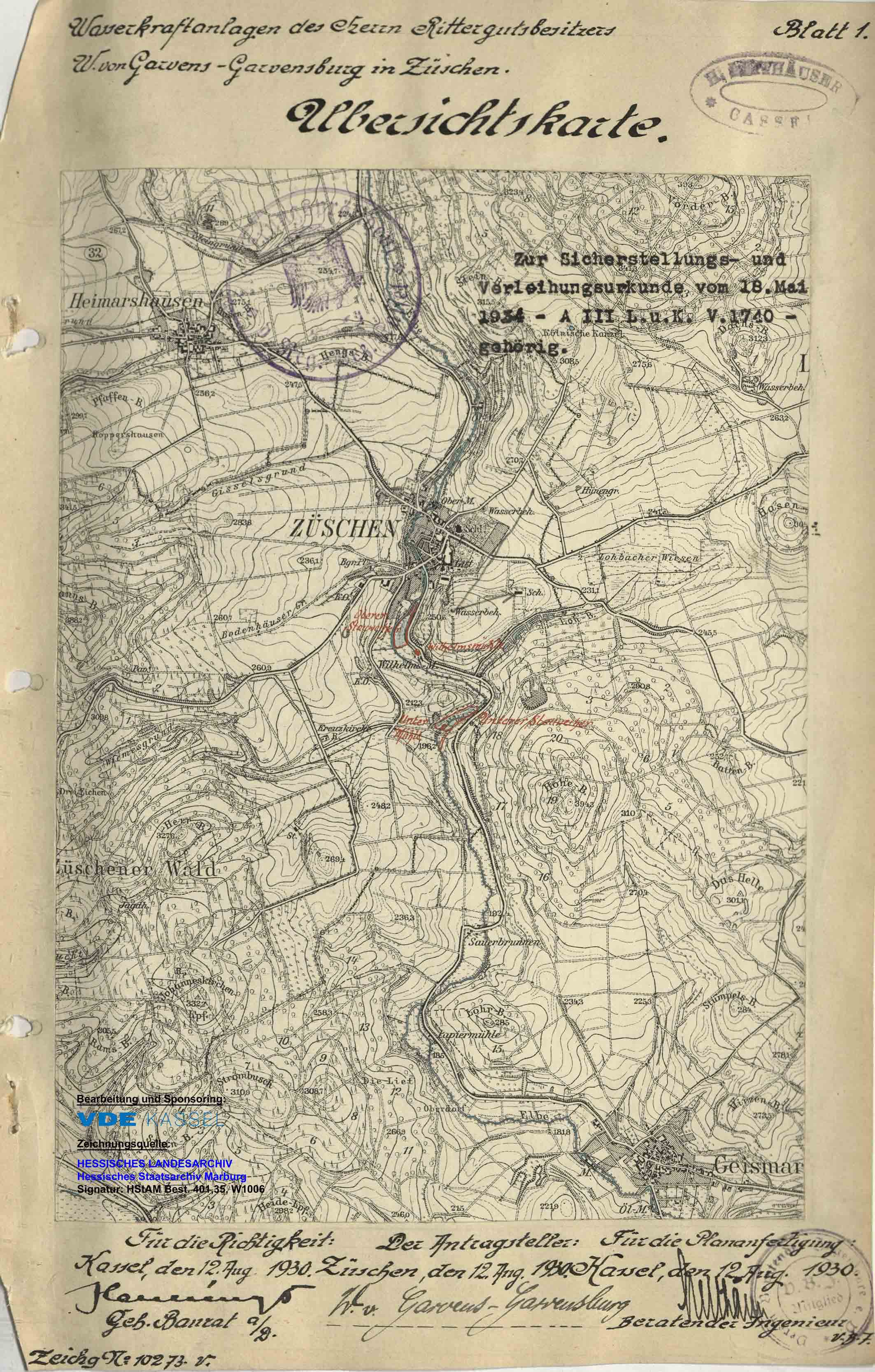 Gern würden wir hier ein Bild der seit Jahrzehnten nicht mehr existenten "Wilhelmsmühle" präsentieren, am südlichen Ortsausgang von Züschen und "Oberen Stauweiher" an der den Ort durchfließenden nordhessischen "Elbe" gelegen. Alle Bemühungen waren bisher vergeblich, wozu sicherlich auch – nicht nur aus Sicht der Ortsbewohner – die hessische Gebietsreform in der Zeit von 1969 – 1979 beigetragen hat. Züschen, zur Zeit der Erstellung der Stromversorgungsanlage "Wilhelmsmühle" für das Rittergut und die Garvensburg mit Stadtrechten dem Fürstentum Waldeck zugehörig, wurde aus dem nach 1945 entstandenen Landkreis Waldeck herausgelöst und als Ortsteil der Stadt Fritzlar im Schwalm-Eder-Kreis zugeordnet.