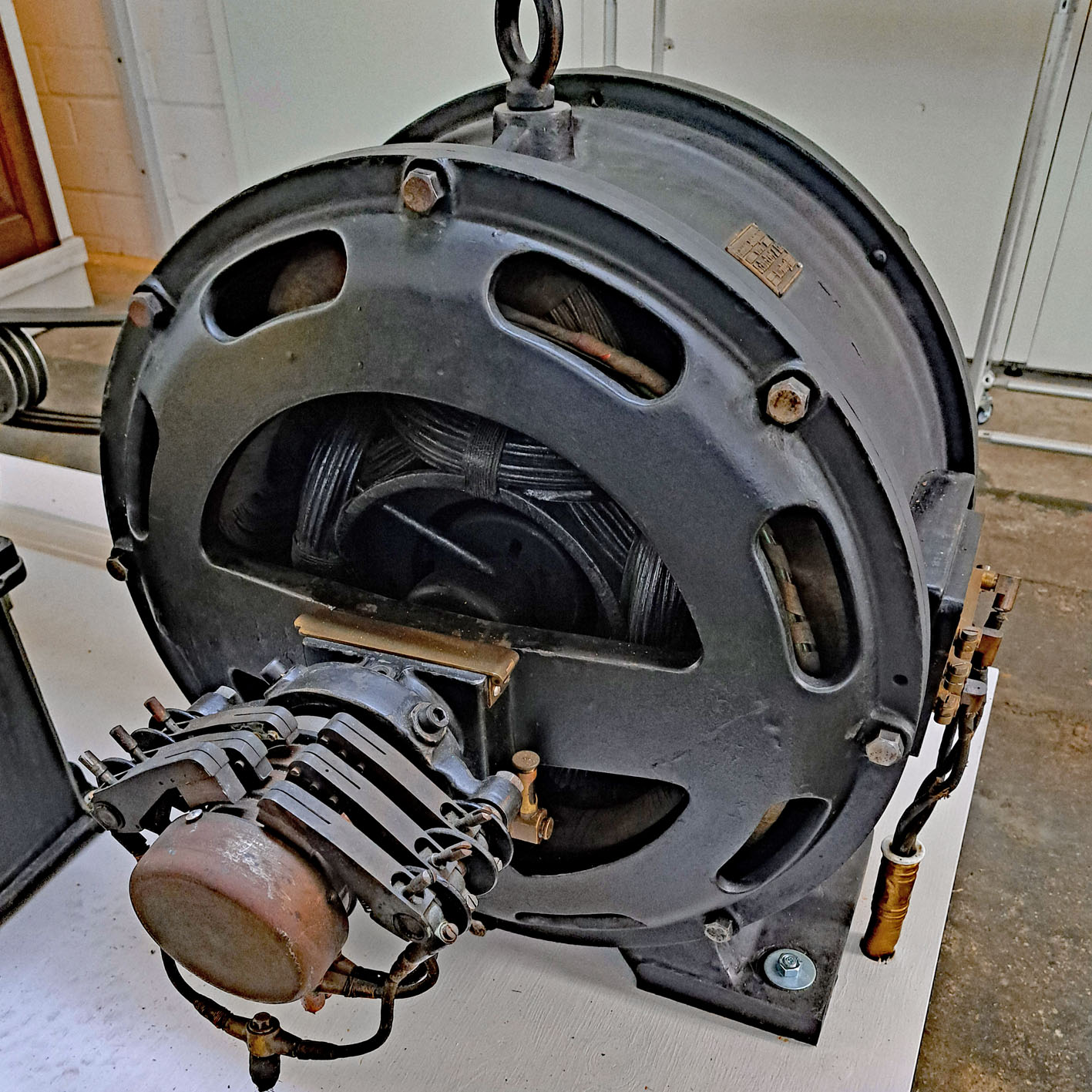 Zumindest der – technikhistorisch betrachtet – seltene Drehstromgenerator der "Elektrizitäts AG vorm. Schuckert & Co. (E.-AG)" und der Drehstrommotor (für den Antrieb eines Gleichstrom-Generators zur Speicherung in Akkumulatoren, s. Abschnitte 5 und 6 unten) sind vermutlich spätestens Anfang 1903 gebaut worden, denn am 01.04.1903 ging die Nürnberger E.-AG mit Siemens & Halske in Berlin einen Zusammenschluss als zunächst der Siemens-Schuckertwerke GmbH (SSW) ein, welche in 1927 in eine AG umgewandelt und 1966 in die Siemens AG integriert wurde. Es war und ist nicht üblich, auf Erzeugnissen Leistungsschilder mit veralteten Firmenbezeichnungen anzubringen, ist aber auch nicht auszuschließen. Extrem selten ist der Generator heute wegen dessen axialer Polbildung zur Magnetfelderzeugung, welche im Stator durch Rotordrehung die drei verketteten, um 120° versetzten Wechselspannungen erzeugt.