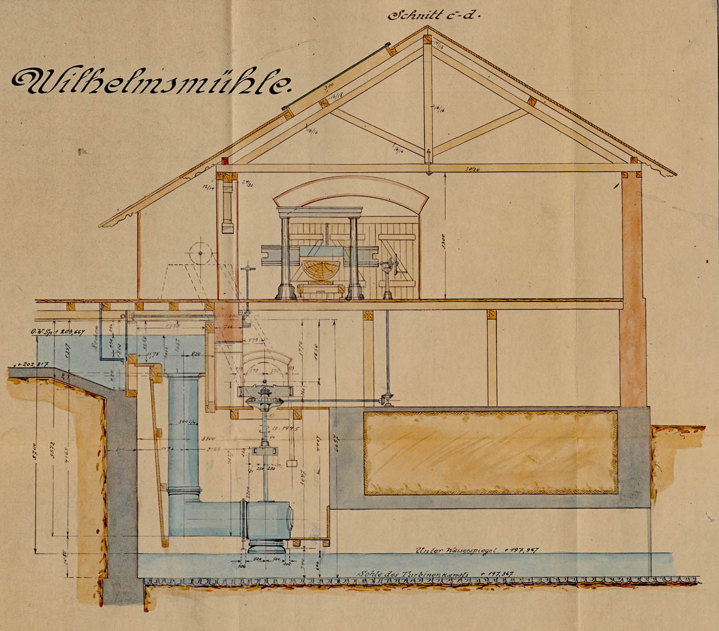 Wasserrechtliche Genehmigungsunterlagen der "Wilhelmsmühle" aus der Zeit nach Sicherstellung bzw. (Neu-)Verleihung der Rechte in den Jahren 1930 – 1934 und Schriftwechsel aus den 1960-/70-er Jahren mit der Eigentümerin Hildegard v. Garvens-Garvensburg werden im Staatsarchiv Marburg aufbewahrt und stellen für die Präsentation im Technik-Museum Kassel die aussagekräftigste Quelle dar. Fotos aus der bis 1962 dauernden Betriebszeit der vermutlich nach 1987 nicht mehr existenten und dann abgerissenen "Wilhelmsmühle" oder in die dort ansässige Schreinerei integrierten Gebäudeteile waren leider nicht zu erhalten. Die meist unscharfen und unterbelichteten Diapositive aus der Zeit der Bergung sagen sehr wenig aus, sind erheblich interpretationsbedürftig und daher hier nicht wiedergabefähig.