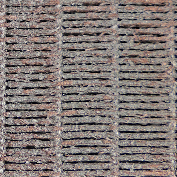Die vergrößerte Makroaufnahme links bzw. oben, hier um 90° gedreht, zeigt einen Ausschnitt aus der 17 cm breiten und 18 cm hohen Original-Platte gemäß obigem Foto. Bei insgesamt ausgezählten 114 Stegen von links nach rechts sind dort mit linkem und rechtem Plattenrand 113 Rillen zu erkennen, hier von oben nach unten. Dies bedeutet, dass Stege wie auch Rillen gemittelt etwa 0,75 mm Breite haben. Aber wie tief gehen die Rillen in die ca. 8 mm starke Platte hinein. Geschätzt haben wir dies mit 2,5 mm und dabei die horizontalen Stege vernachlässigt. Bei einer 180 mm hohen Platte mit gemittelt 0,75 mm breiten Rillen haben diese eine linke wie auch eine rechte Seite. Bei einer Plattenbreite von 170 mm entsteht also je Rille links wie rechts eine Oberfläche von je