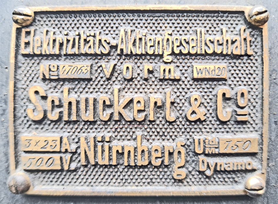 Es könnte aber – angesichts der seinerzeit noch fehlenden Normung und auch ungewöhnlichen Dimensionen sowie Materialmassen unseres TMK-Exponats – auch sein, dass mit der Multiplikation aus den Generatordaten 500 V und 23 A sowie der √3 tatsächlich die Wirkleistung gemeint war. Dann würde die Scheinleistung betragen