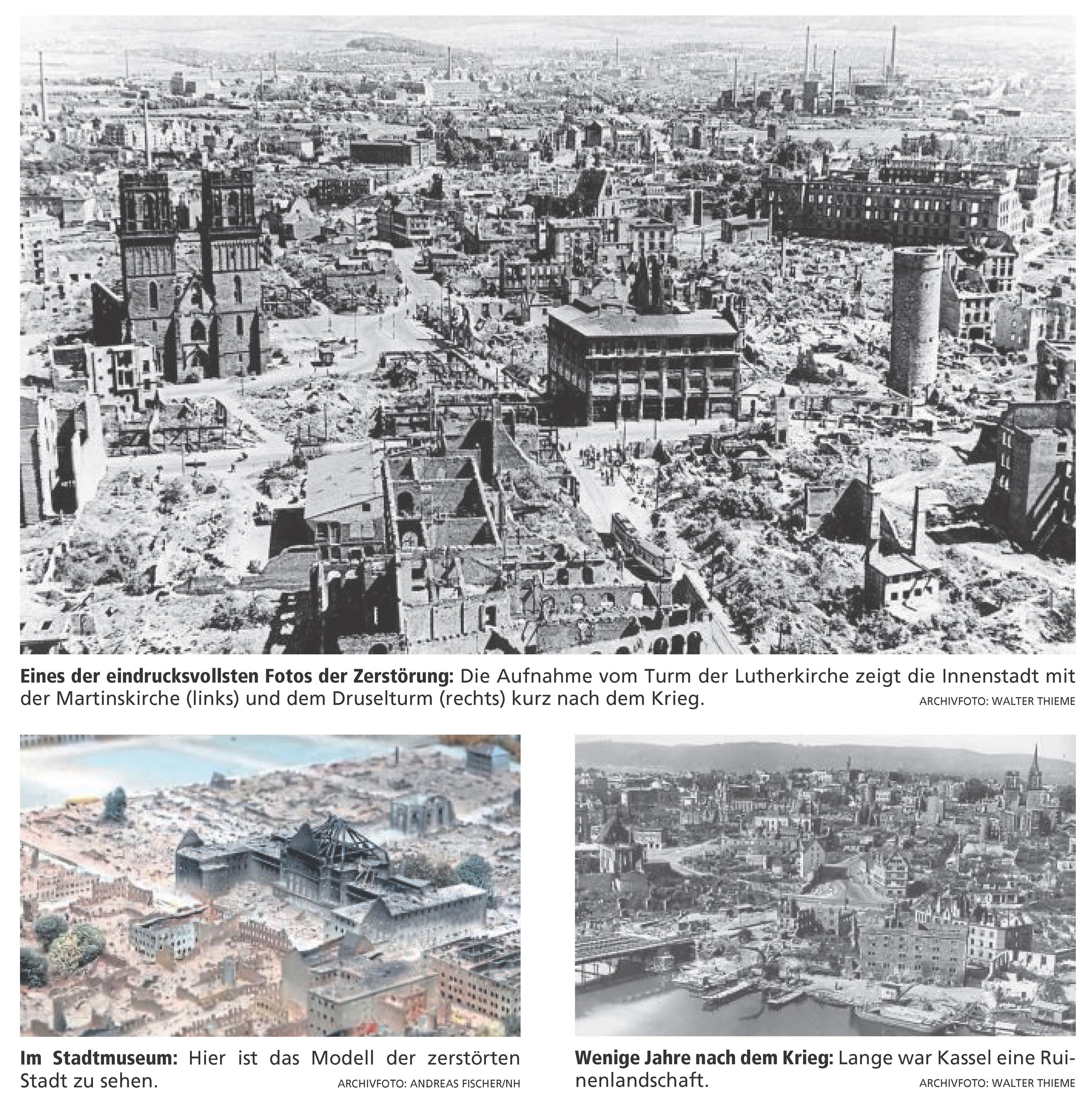 Versetzen wir uns dazu einmal kurz 70 Jahre zurück, in die Stadt Kassel im Jahre 1953. Da lag es noch keine 10 Jahre zurück, dass nahezu die gesamte Innenstadt – eine von Zeitzeugen beschriebene wunderschöne, mittelalterlich anmutende Fachwerkstadt – im 2. Weltkrieg dem verheerenden nächtlichen Bomberangriff am 22. Oktober 1943 zum Opfer fiel, mit einer hohen Zahl an zivilen Todesopfern unter den damals über 240.000 Einwohnern.