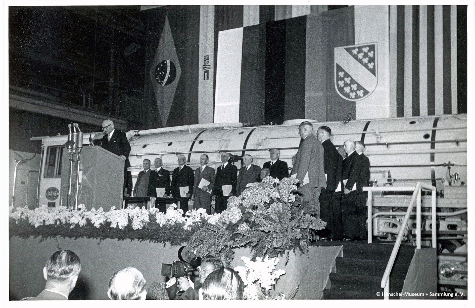 Bild L01 - 1 Mai 1953 vor SAR 3435 Henschel Betriebsversammlung mit Bundespräsident Theodor Heuss – Foto p001 Pb 577 - II 34 - Sammlung HMS