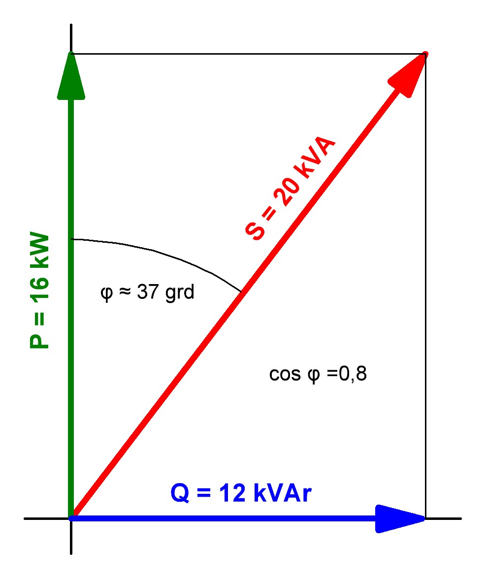 P = S * cos φ = 20 * 0,8 = 16 kW