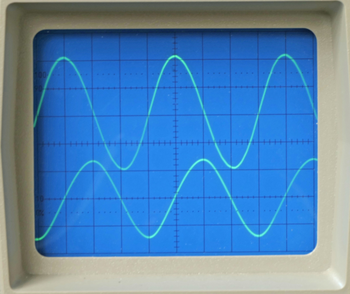 Jede Zuschaltung eines Stroms verursacht den Aufbau eines Magnetfeldes, gleich ob in einem linear geführter Draht (z.B. ein Leiterseil einer Freileitung) oder – das Magnetfeld noch verstärkend – in einer Spule bzw. Wicklung. Bei der Strom-Abschaltung wiederum verursacht das dann zusammenbrechende Magnetfeld die Induktion einer Spannung in Draht bzw. Leiterseil (Prinzip der elektromagnetischen Induktion, unabhängig voneinander entdeckt durch den Engländer Michael Faraday, den Amerikaner Joseph Henry und den Dänen Hans Christian Oersted Anfang der 1830-er Jahre). Bei einem Wechselstrom von z.B. 50 Hz erfolgt dieser Magnetfeldauf- und abbau 100 mal in der Sekunde wegen der wechselnden Stromrichtung und verursacht damit einen frequenzabhängigen Widerstand gegen den Wechselstrom, den Blindwiderstand. Ohne Berücksichtigung des Ohm´schen Widerstands dieses Drahtes in einer Wicklung folgt der Wechselstrom der treibenden Spannung um 90°el später in seiner Form, idealerweise der Sinuskurve einer Vollschwingung von 360°el. Das Strommaximum erreicht er also bei 50 Hz erst 5 Millisekunden (ms) nach dem Spannungsmaximum usw. usw., bis nach 20 ms, also einer Vollschwingung, das Spannungsminimum auf der Nulllinie und das Strommaximum im Negativbereich erreicht sind. Dieser Strom bedarf keiner Wirkarbeit in der treibenden Arbeitsmaschine, belastet aber dennoch den Generator, einen Transformator und die Leitungen, er pendelt also ständig hin und her. In neben- bzw. obenstehendem Oszilogramm, erstellt an unserem TMK-Modell für ohmsche, induktive und kapazitive Belastungen, ist dies mit der treibenden Wechselspannung in der oberen Kurve und dem daraus resultierenden Strom in der unteren Kurve gut zu erkennen (in der horizontalen Auflösung 5 ms je Kästchen, s. Bild rechts bzw. oben).