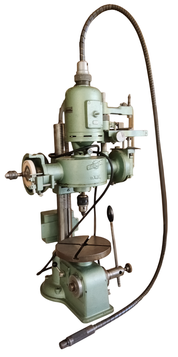 1950 brachte Heinzerling die Universalmaschine HEIMAG A5 auf den Markt: klein und handlich, mit den Anwendungsmöglichkeiten bohren, schleifen, fräsen, sägen sowie mit einer zusätzlichen biegsamen Welle.