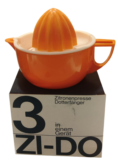 Zu den weiteren Küchenutensilien, die von HEIMAG erfunden und angeboten wurden, gehörte die Zi-Do. Dabei handelte es sich um eine Zitronenpresse mit zwei unterschiedlichen Presskegeln und der Möglichkeit, Eier zu trennen.